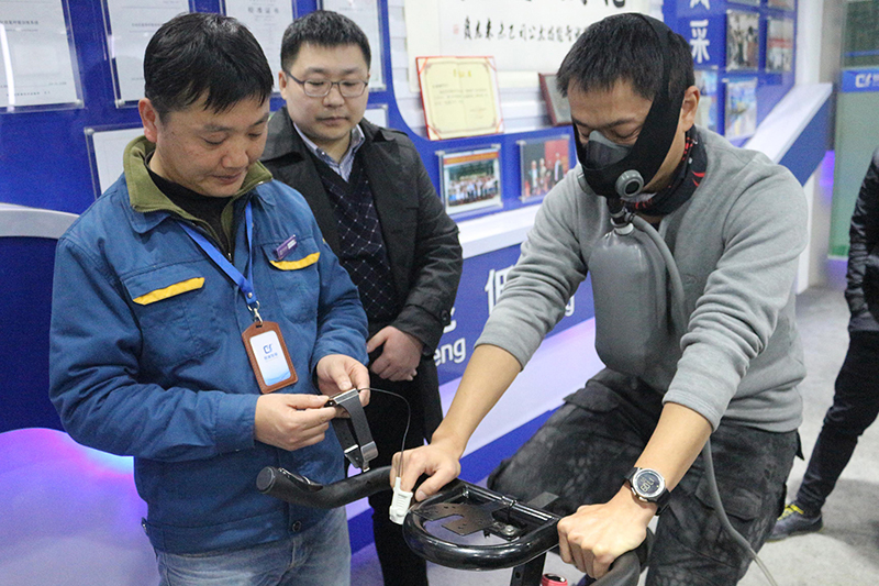 熱烈的交流以后,林茂先總經(jīng)理引領(lǐng)客人一行參觀恒誠(chéng)智能低氧訓(xùn)練體驗(yàn)中心。恒誠(chéng)智能體能團(tuán)隊(duì)彭教練等向客人一行介紹和展示低氧呼吸訓(xùn)練系統(tǒng)后,戶外和馬協(xié)的運(yùn)動(dòng)健兒們踴躍投入到低氧訓(xùn)練體驗(yàn)。