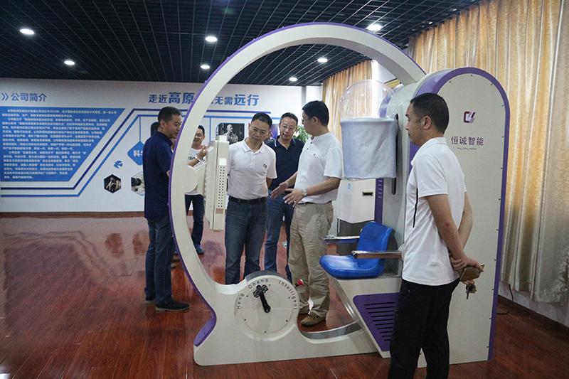 在林總的陪同下,戴忠林處長一行饒有興致的參觀了恒誠智能產(chǎn)品展示中心、低氧房裝置、低氧健身體驗中心;同時對低氧設備也作了詳細的體驗、考察,通過現(xiàn)場的積極互動與交流,對恒誠智能的智能化低氧呼吸訓練系統(tǒng)在未來競技體育領域也給予了很大的期許!