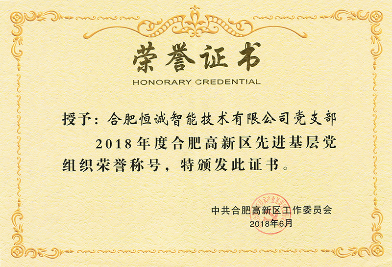 恒誠智能黨支部榮獲“2018年度合肥高新區(qū)先進(jìn)基層黨組織”榮譽(yù)稱號