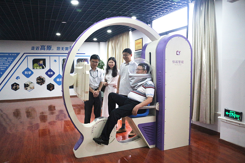 領(lǐng)導(dǎo)一行先后參觀了恒誠(chéng)智能產(chǎn)品展示中心、低氧房裝置系統(tǒng)、低氧健身體驗(yàn)中心,通過公司員工的專業(yè)講解,更全面的了解了公司的低氧產(chǎn)品,對(duì)用科學(xué)的健身方法進(jìn)行低氧健身訓(xùn)練有了更深層次的理解,對(duì)公司填補(bǔ)了低氧領(lǐng)域的國(guó)內(nèi)空白、國(guó)際領(lǐng)先的科技技術(shù)給予了高度評(píng)價(jià),對(duì)公司的科技發(fā)展給予厚望。
