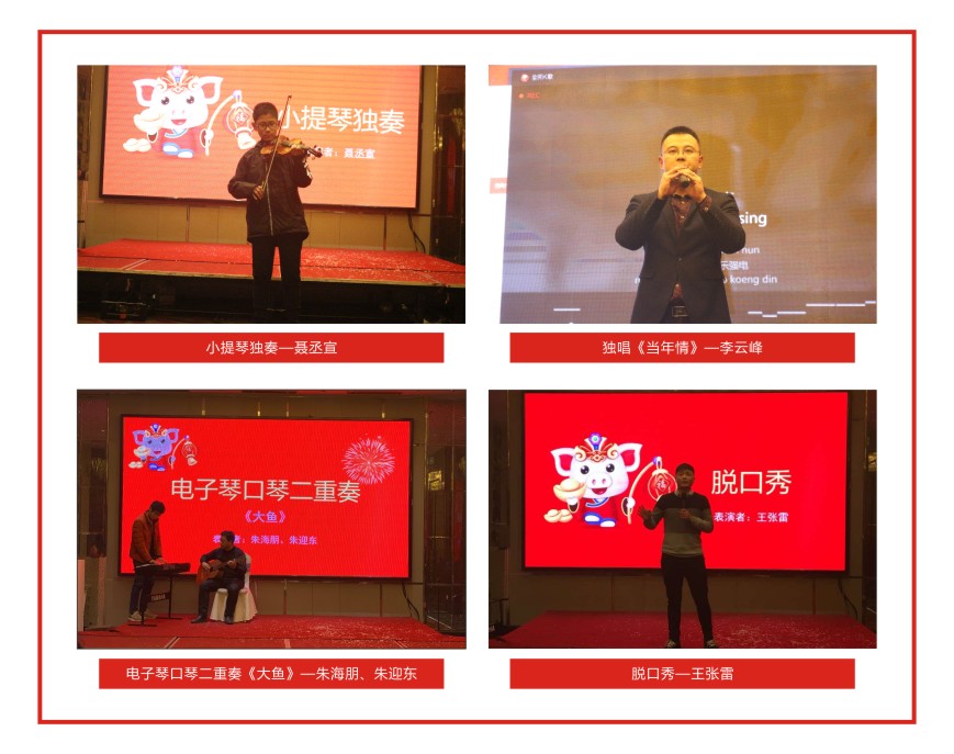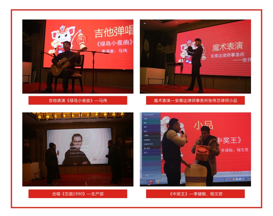 公司員工帶來了各種精彩絕倫的表演,吉他彈奏、大合唱、小品、脫口秀等節(jié)目,讓人目不暇接。特邀嘉賓安泰達(dá)律師事務(wù)所的張偉藝律師及聶丞宣小帥哥還為大家?guī)砹司实哪g(shù)表演和小提琴獨(dú)奏。晚會不僅充滿了歡聲笑語,同時也讓大家的心更緊密的融合在了一起。公司員工和來賓們,積極參與游戲、相互敬酒、參加K歌環(huán)節(jié),讓歌聲、掌聲、喝彩聲一直飄蕩在現(xiàn)場。整場晚會高潮迭起,呈現(xiàn)了恒誠這個大家庭的和諧幸福。