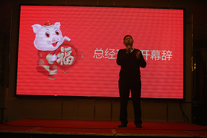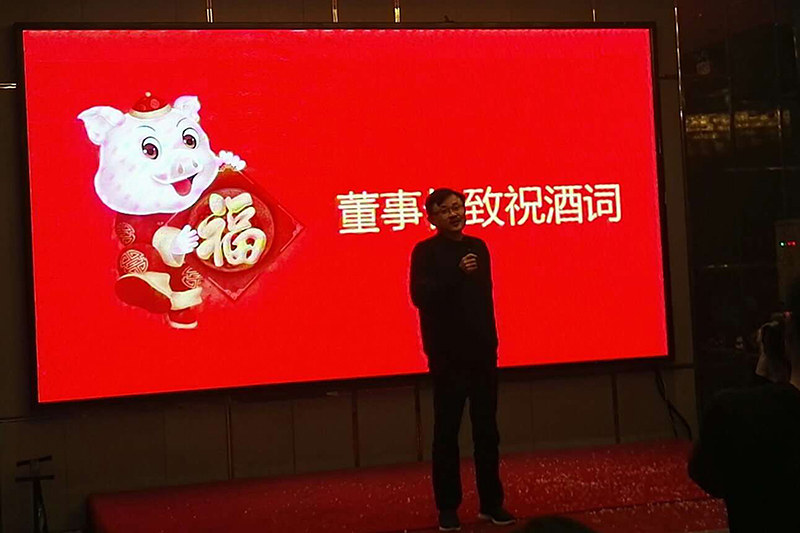 晚宴正式開始前,董事長蔡勝玉先生上臺為大家致祝酒詞,并送上新年祝福。