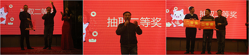 大家最喜歡的抽獎環(huán)節(jié)當(dāng)然是必不可少的,由張榮、錢昌偉兩位副總經(jīng)理為大家抽取了三等獎,徐瑋副董事長、楊高國老師為大家抽取了二等獎和一等獎。隨著各獎項(xiàng)的抽取,不斷掀起年會的高潮,歡呼聲一直在會場上蕩漾,呈現(xiàn)出溫暖、歡樂、祥和的大家庭氣氛。