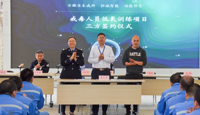 2019年4月19日上午,安徽省未戒所與合肥恒誠智能技術(shù)有限公司及動(dòng)能體育在蜀山區(qū)舉行了“戒毒人員低氧訓(xùn)練項(xiàng)目三方戰(zhàn)略合作協(xié)議”的簽約儀式。