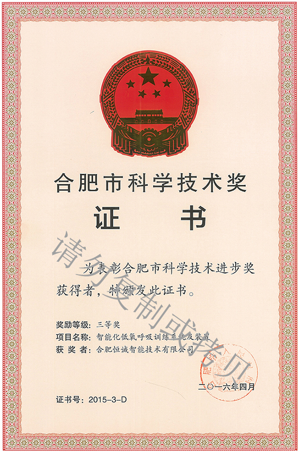 合肥市科學(xué)技術(shù)獎(jiǎng)證書