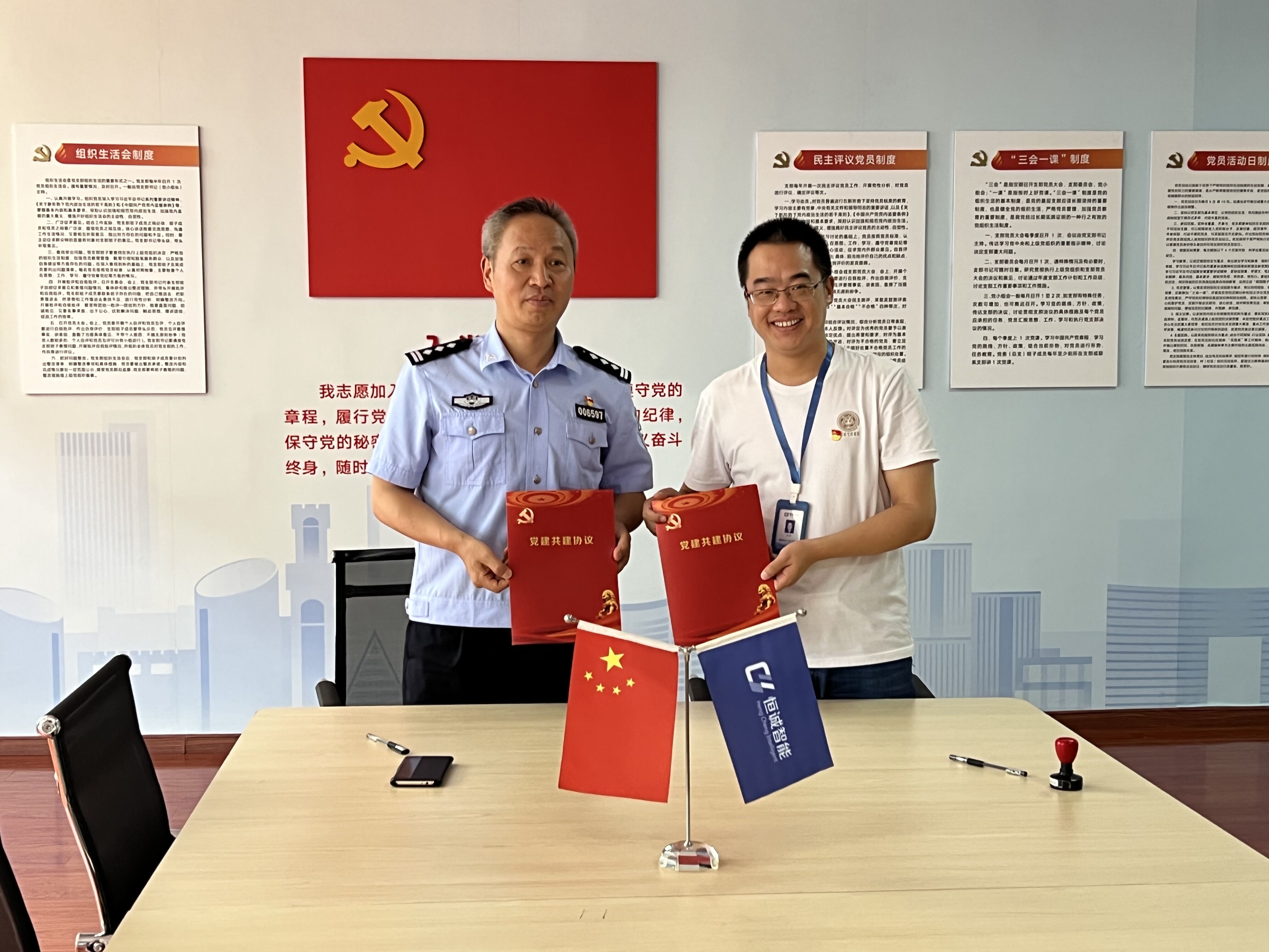 高新公安分局刑警大隊(duì)教導(dǎo)員王樹(shù)生與恒誠(chéng)智能黨支部書(shū)記張榮