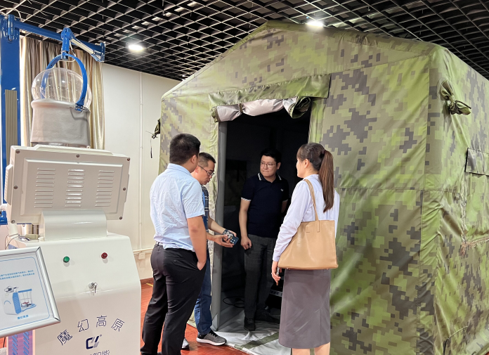 公司領(lǐng)導(dǎo)們一起陪同沈總等人不僅參觀了公司自1代研發(fā)到6代主流移動(dòng)式低氧訓(xùn)練產(chǎn)品及科普教育類產(chǎn)品,還參觀了公司未來針對(duì)高端客戶群體研發(fā)的空間型低氧設(shè)備(低氧訓(xùn)練房、移動(dòng)式低氧帳篷)等等。