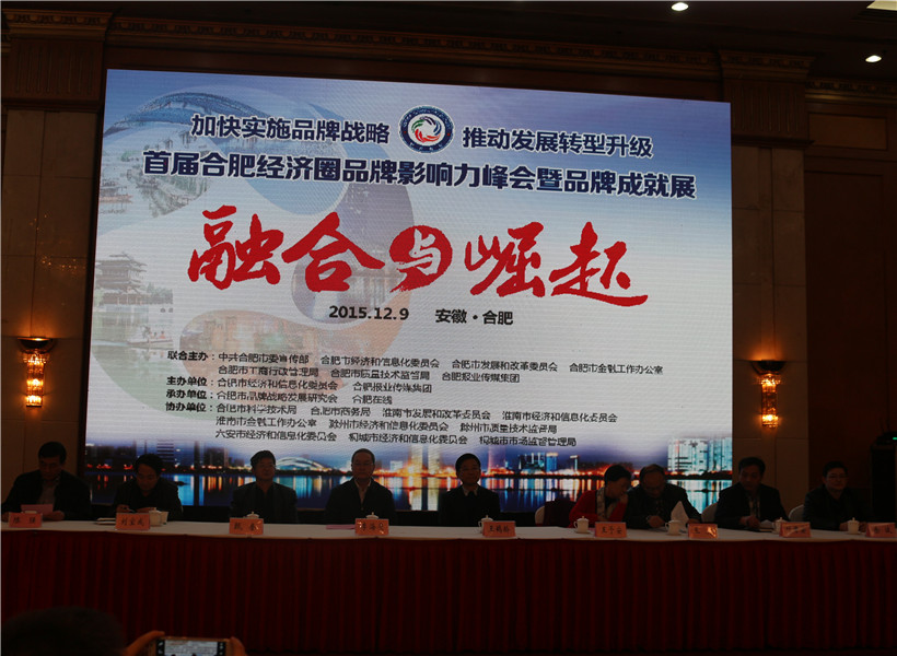 為貫徹《質(zhì)量發(fā)展綱要》,加快合肥品牌建設(shè),推動(dòng)產(chǎn)業(yè)轉(zhuǎn)型升級(jí),促進(jìn)區(qū)域經(jīng)濟(jì)跨越發(fā)展,進(jìn)一步擴(kuò)大合肥品牌的競(jìng)爭(zhēng)力和影響力,由合肥市委宣傳部、市經(jīng)信委、市發(fā)改委、市金融辦、市工商局、市質(zhì)監(jiān)局、合肥報(bào)業(yè)傳媒集團(tuán)聯(lián)合主辦,合肥經(jīng)濟(jì)圈相關(guān)政府部門(mén)支持協(xié)辦的首屆合肥經(jīng)濟(jì)圈品牌影響力峰會(huì)于2015年12月9日在合肥稻香樓賓館隆重舉行。我公司受邀參加。
