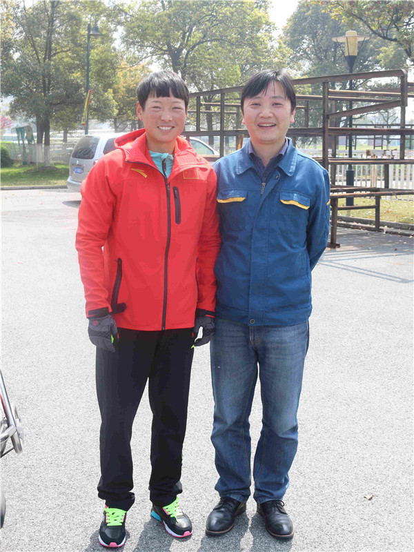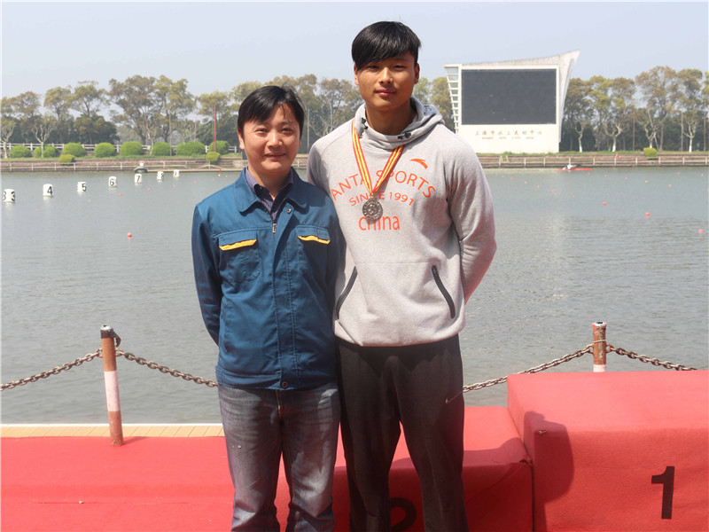 我司工作人員與200米男子單人雙槳冠軍儲友勇合影
