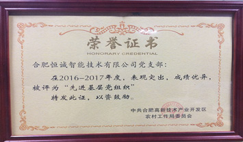 近日,高新區(qū)召開紀念建黨96周年大會,合肥恒誠智能技術有限公司黨支部榮獲“先進基層黨組織”稱號。