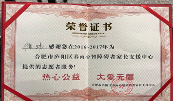 6月4日“合肥春雨心智障礙者家長(zhǎng)支援中心第一屆志愿者答謝會(huì)”在合肥工業(yè)大學(xué)禮堂順利舉行,我司徐瑋先生作為優(yōu)秀志愿者代表接受大會(huì)表彰。 徐瑋先生多年來一直熱心公益事業(yè)、積極參加...
