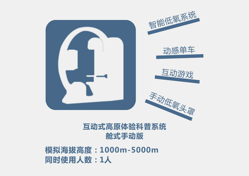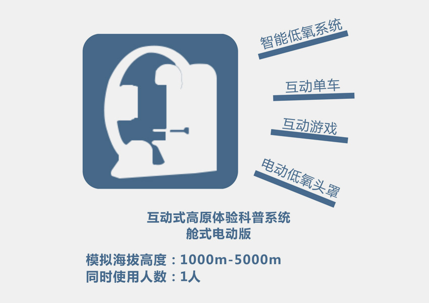 高精度模擬等效海拔高度的低氧環(huán)境,同步展現(xiàn)相對應(yīng)的人文、地理、動植物等科普知識的音視頻,通過自身感官體驗(yàn)高原環(huán)境,普及高原知識;實(shí)時(shí)展現(xiàn)體驗(yàn)者在不同海拔下的心率、血氧飽和度等生理指標(biāo),通過科學(xué)、安全的方法有效提高高原低氧環(huán)境適應(yīng)能力。